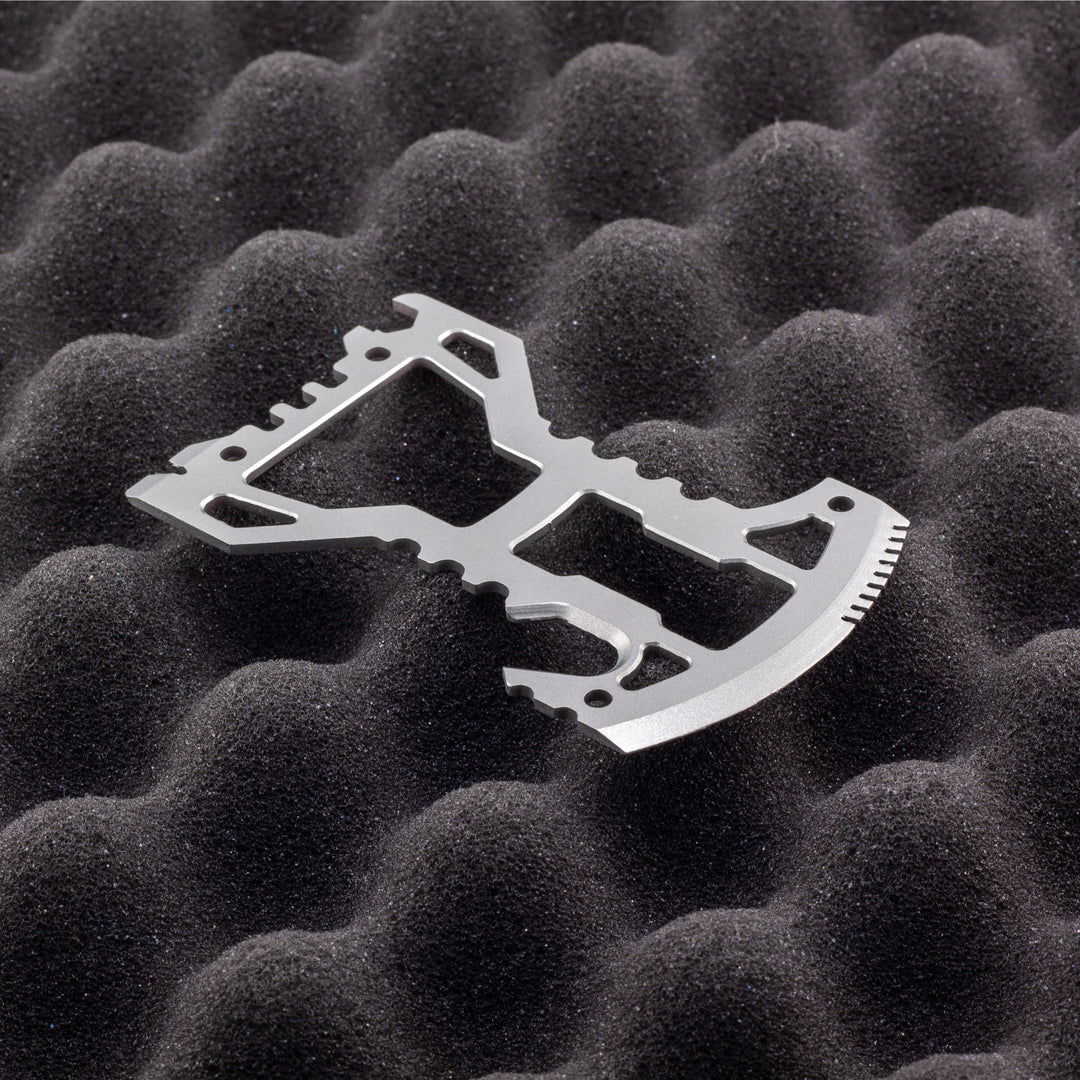 Twelve function Grade 5 Titanium Multi-tool. Same size as a credit card so fits any wallet. This is a small multi-tool designed to function when more capable tools are not at hand. Titanium does not hold an edge or sharpen like steel but is stronger, lighter and virtually indestructible.